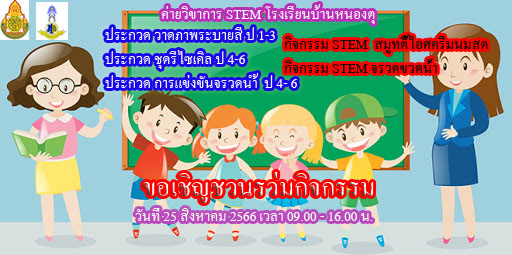 ขอเชิญร่วมกิจกรรมค่ายวิชาการ STEM ณ . โรงเรียนบ้านหนองตุ ต.หมากแข้ง อ.เมือง จ.อุดรธานี