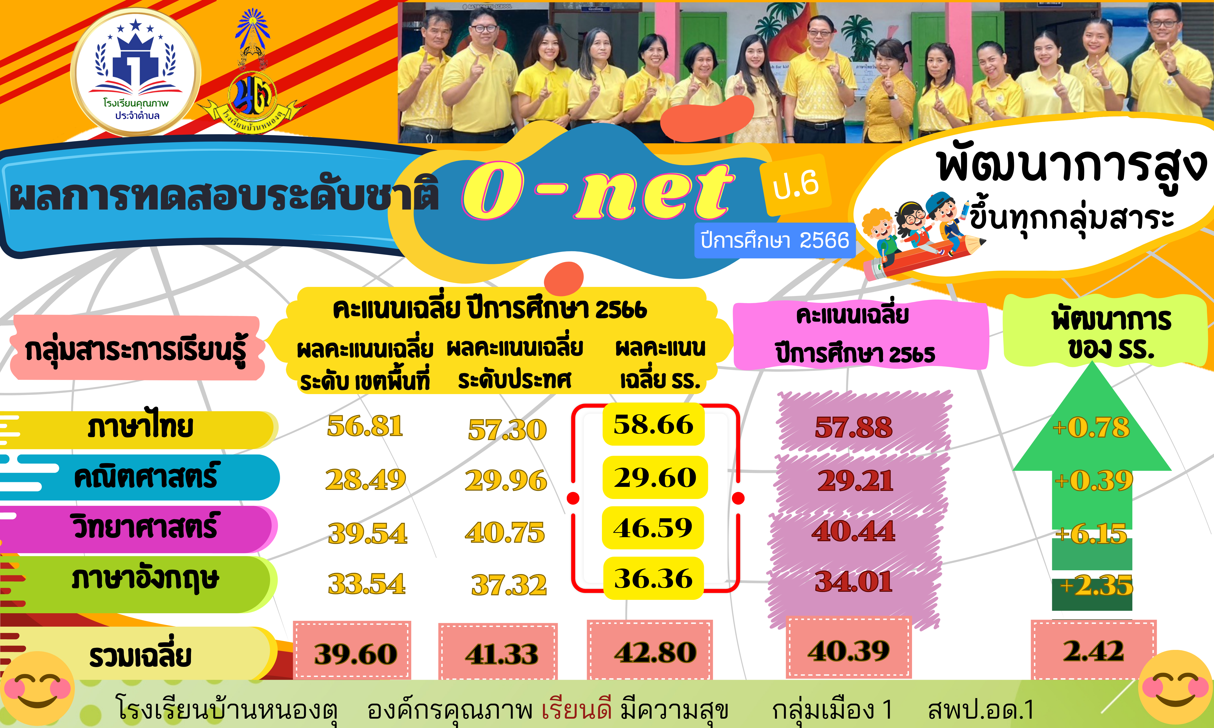 ผลการทดสอบระดับชาติo-net โรงเรียนบ้านหนองตุ ปีการศึกษา 2566
