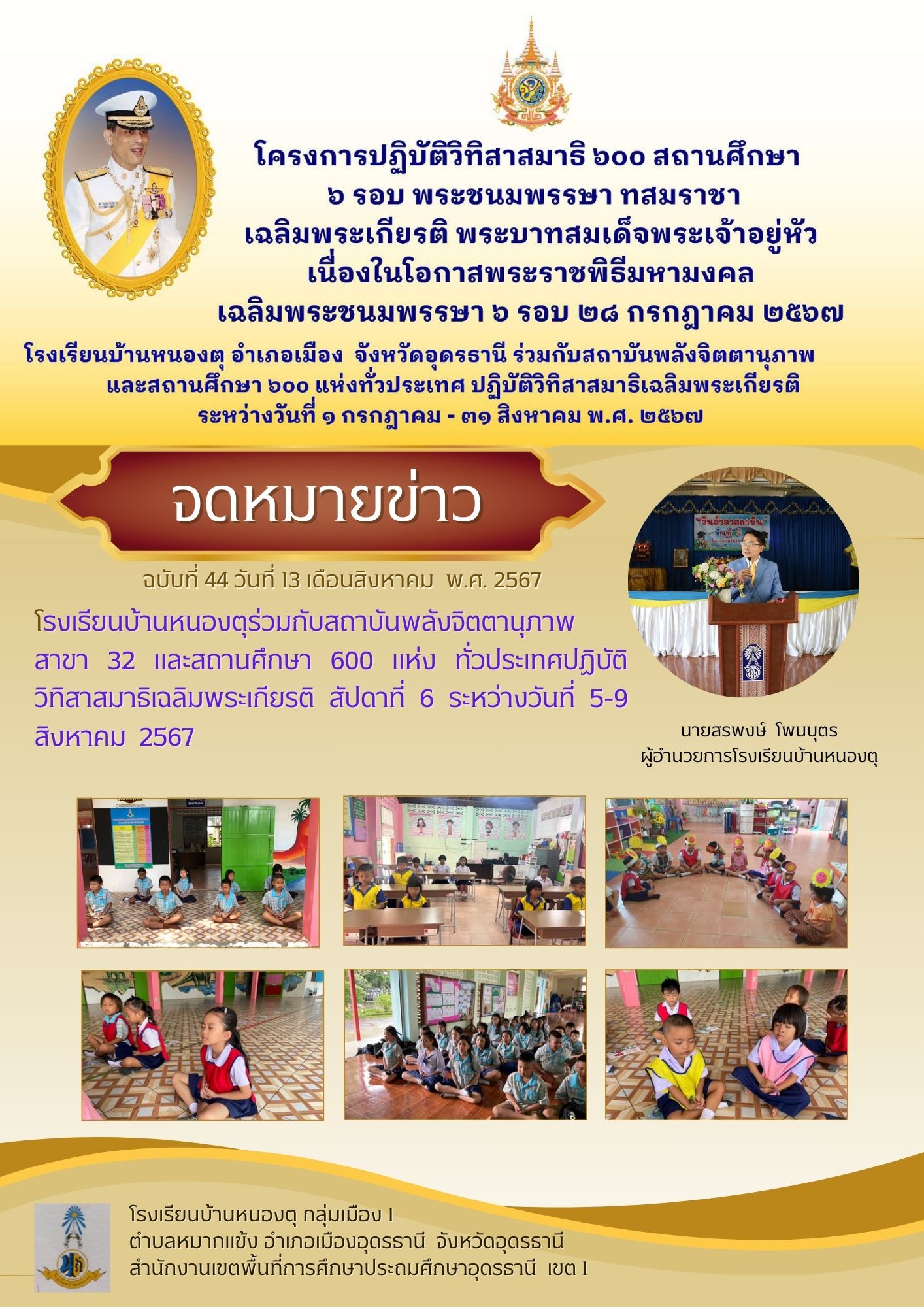 โครงการปฏิบัติวิทิสมาธิ 600 สถาณศึกษา เฉลิมพระเกียรติพระบาทสมเด็จพระเจ้าอยู่หัว เนื่องในโอกาสวันเฉลิมพระชนมพรรษา ๒๘ กรกฎาคม ๒๕๖๗