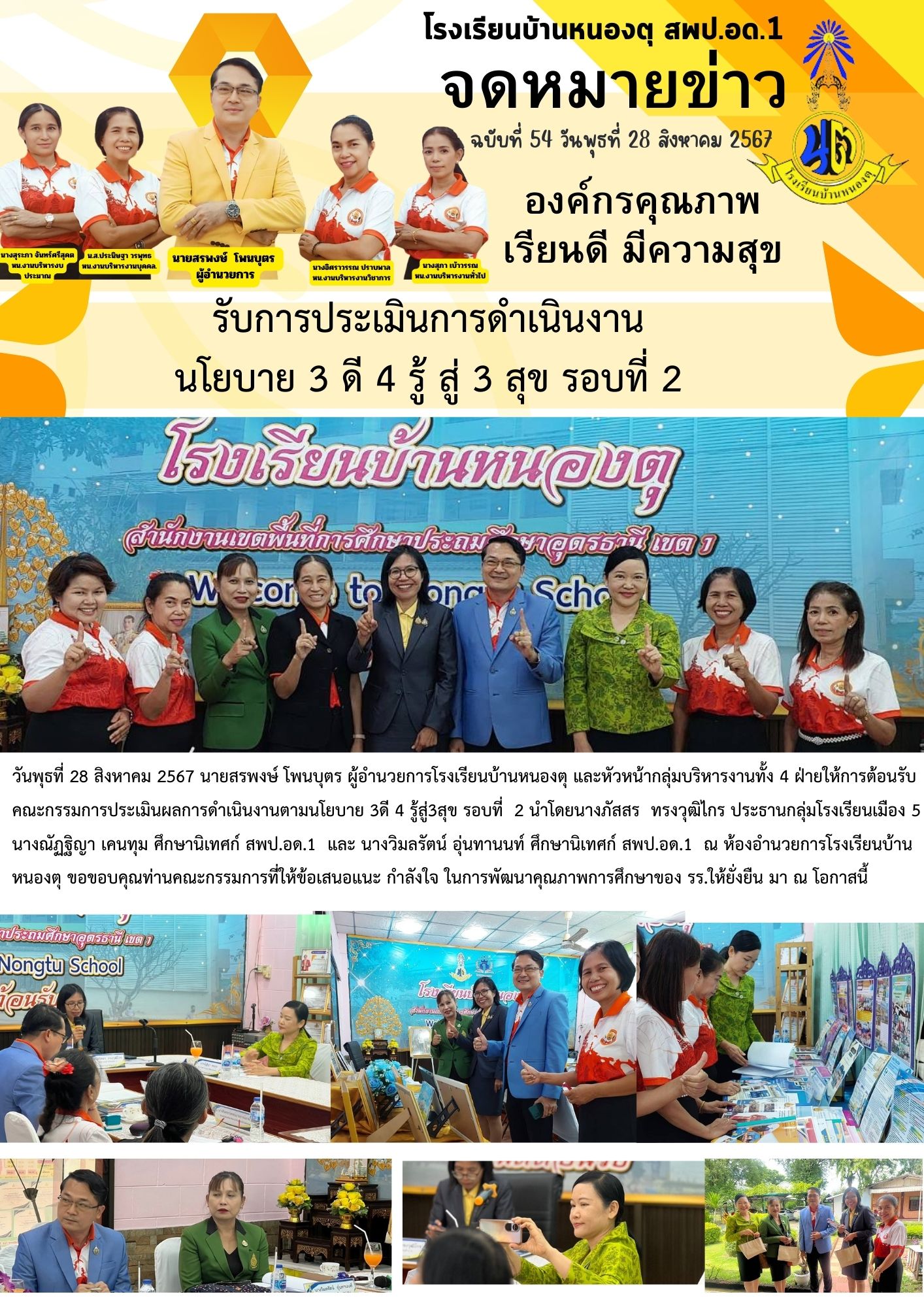 การประเมินการดำเนินงาน นโยบาย 3 ดี 4 รู้ สู่ 3 สุข รอบที่ 2 สำนักงานเขตพื้นที่การศึกษาประถมศึกษาอุดรธานีเขต 1