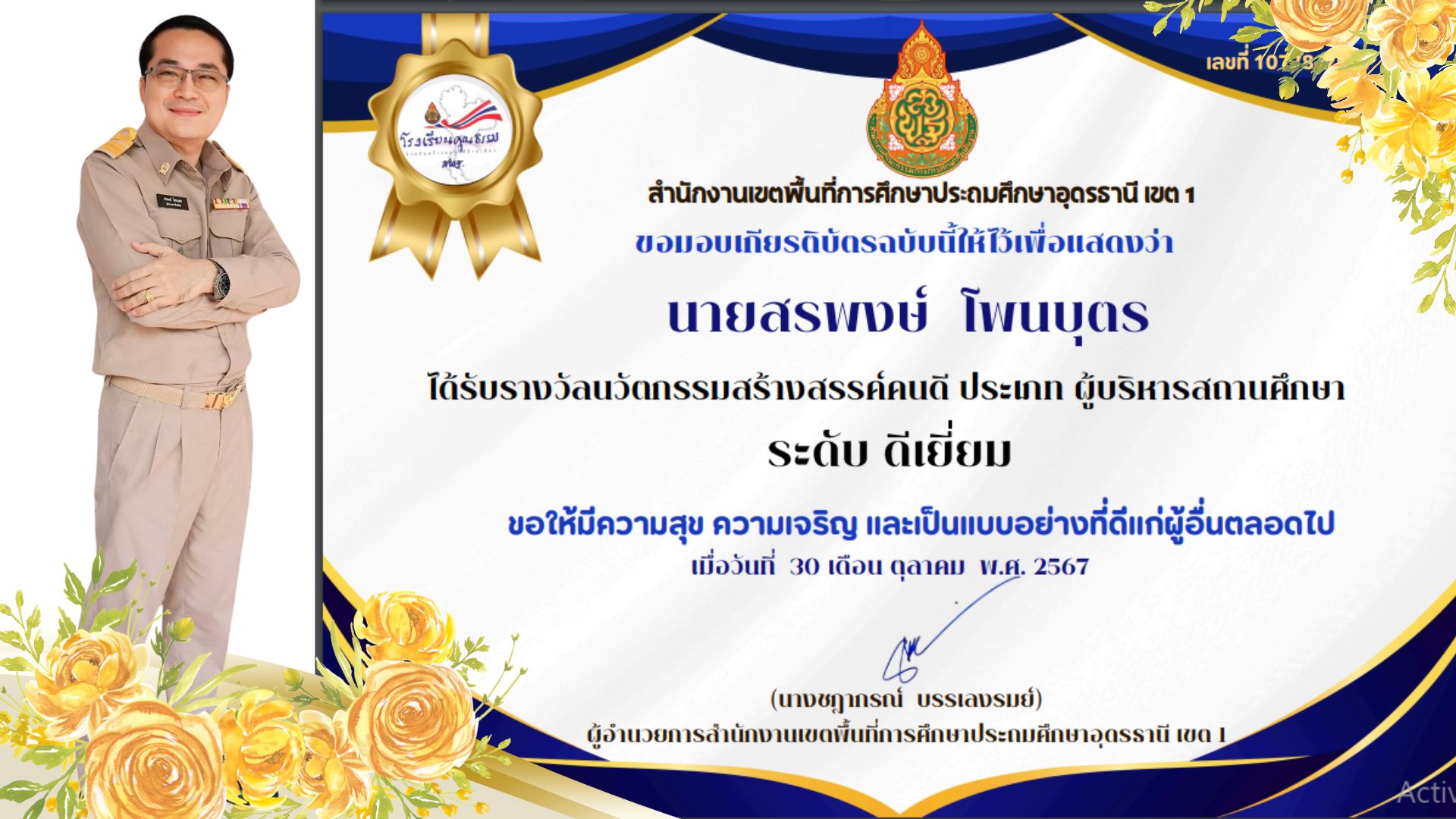 ขอแสดงตวามยินดีท่านผู้อำนวยการโรงเรียนบ้านหนองตุนายสรพงษ์ โพนบุตร