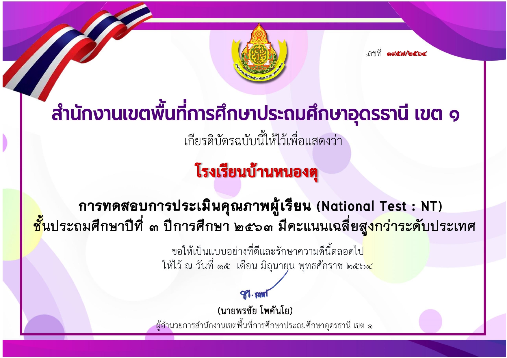 คะแนนทดสอบ NT ป.3 สูงกว่าระดับประเทศ