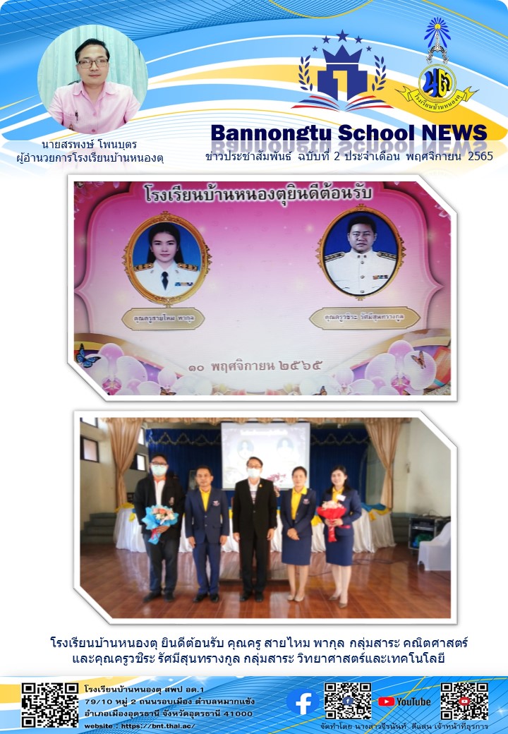 วันที่ 10 พฤศจิกายน 2565 โรงเรียนบ้านหนองตุ ยินดีต้อนรับครูไหม่ทั้ง 2 ท่าน